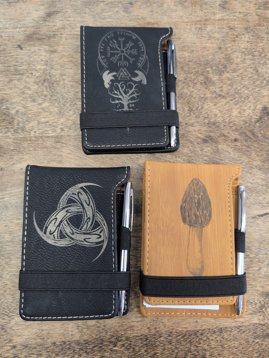 Note Pad Pen and Cover Engraved Leatherette Vegan Leather