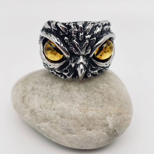 Retro Owl Devil's Eye Stainless Steel Men's Ring