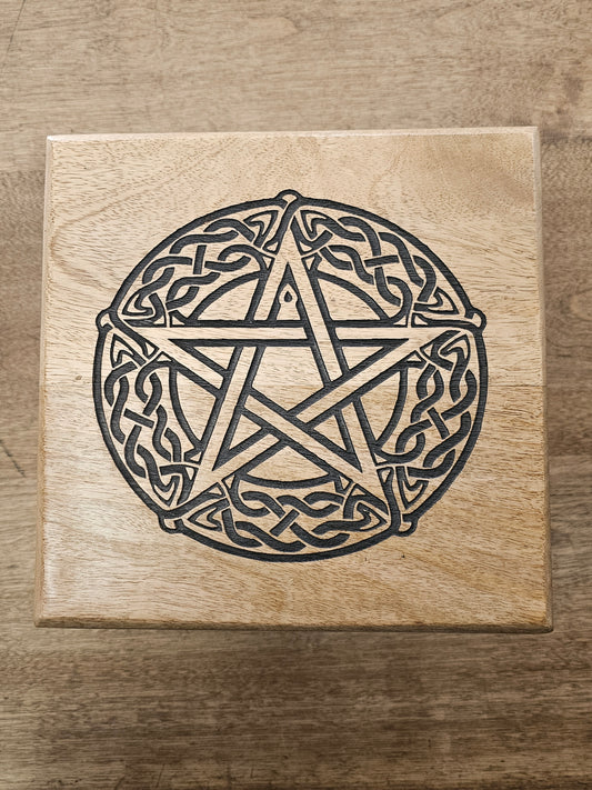 Wood Altar Table Engraved with Pentagram