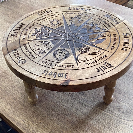 Wood Altar Table Engraved with Pagan Calendar