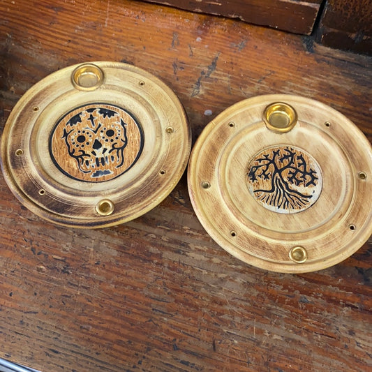Wooden Circle 4in Incense Burner Tray cones or sticks