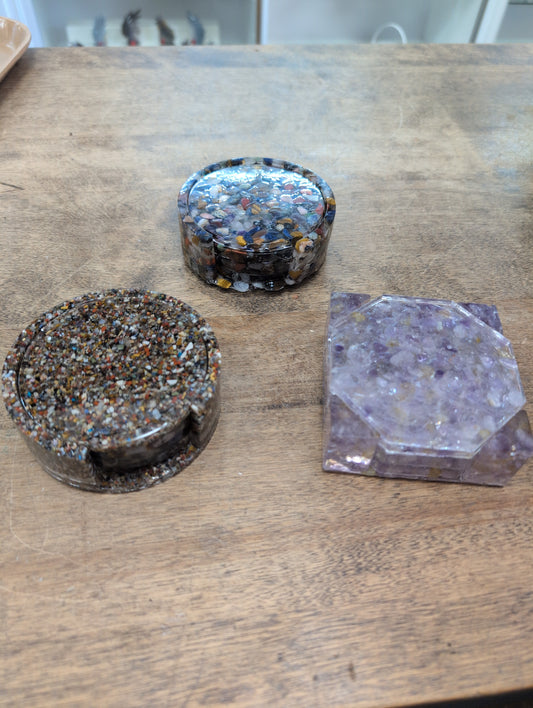 Epoxy Resin and Tumbled Stone Coaster Sets