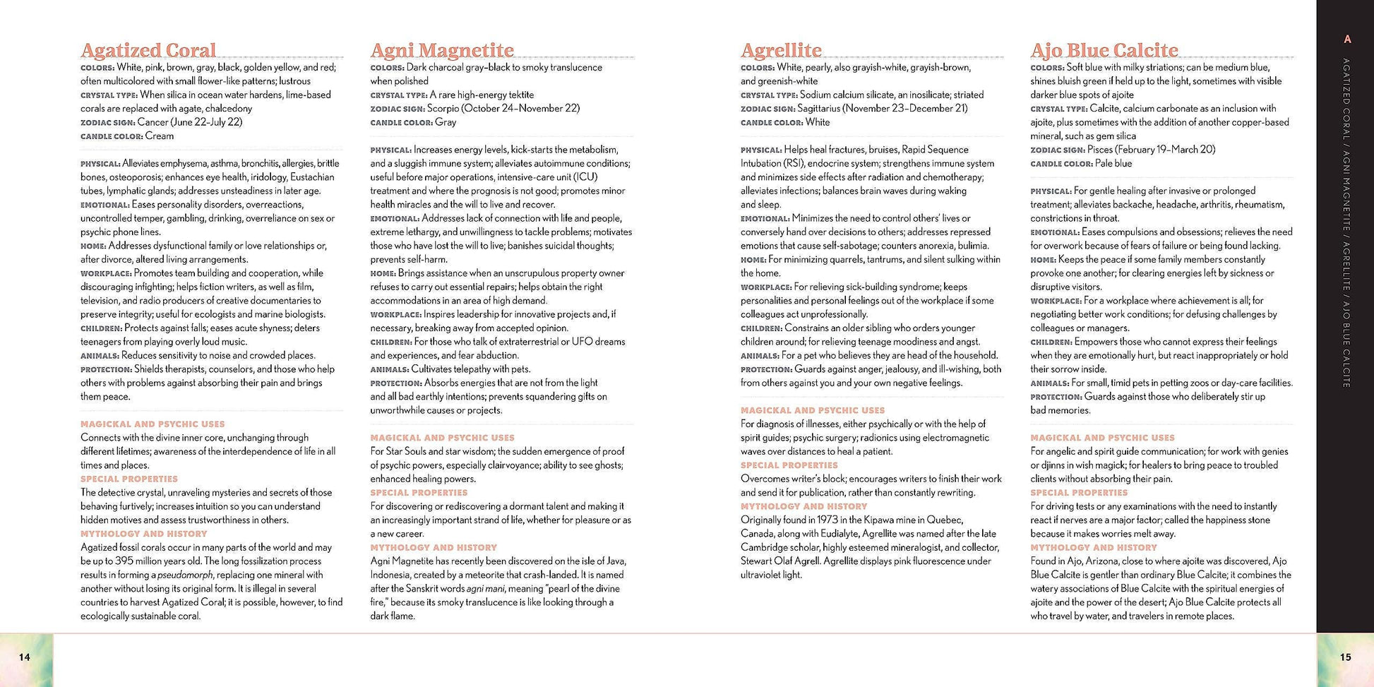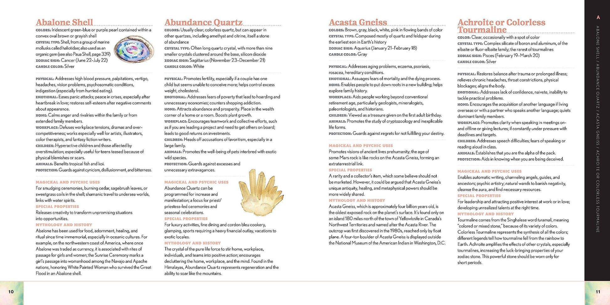 You may be familiar with rose quartz, amethyst, tourmaline, or selenite—but what about agrellite, Blade of Light, star garnet, or king cobra jasper? A wealth of knowledge and amazing healing powers can be gained by studying the wide world of crystals, from the most popular varieties to the lesser known. Cassandra Eason, practicing witch and author of more than 130 books on every aspect of the magical and mystical, supplies this compendium of wisdom full of never-before-seen research, tips and tricks, and easy practices anyone can incorporate into their daily routine to increase good fortune, ward off the evil eye, heal the body and the spirit, and more. Hardcover Book; 8 x 8 inches; 544 pages.