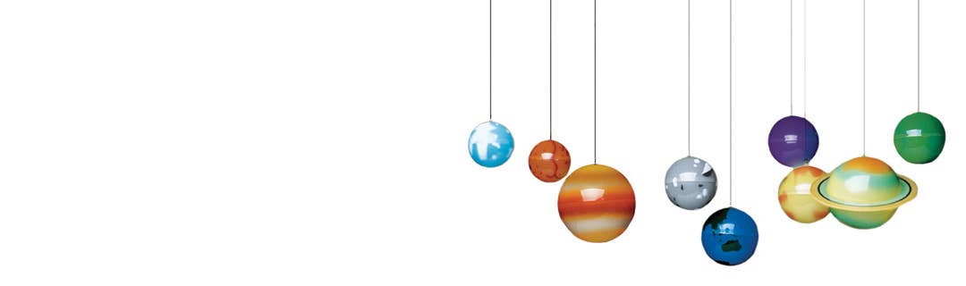 What a stellar set! Bring a splash of science to your decor with these gleaming planets and stars. A special phosphorescent formula will give your universe long life and all the accessories you need to hang and stick everything into place are included in the kit. Comes with eight glow-in-the-dark planets plus Pluto, 25 feet of string, 230 glow-in-the-dark adhesive stars and a planetary guide.