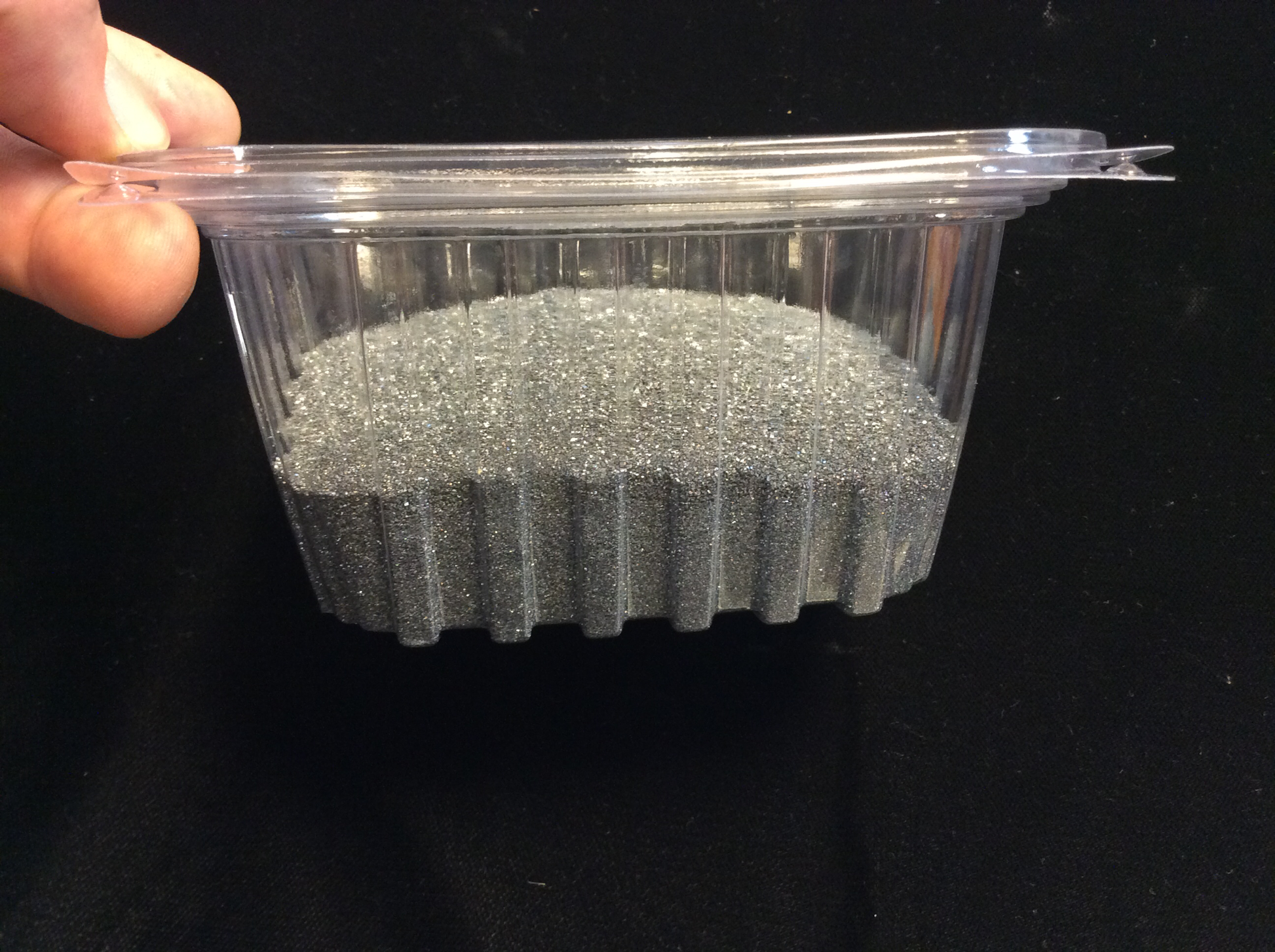 60/90 grit silicon carbide grit for tumbling stones. 1lb and 5lb packed in compostable plant-plastic deli containers.