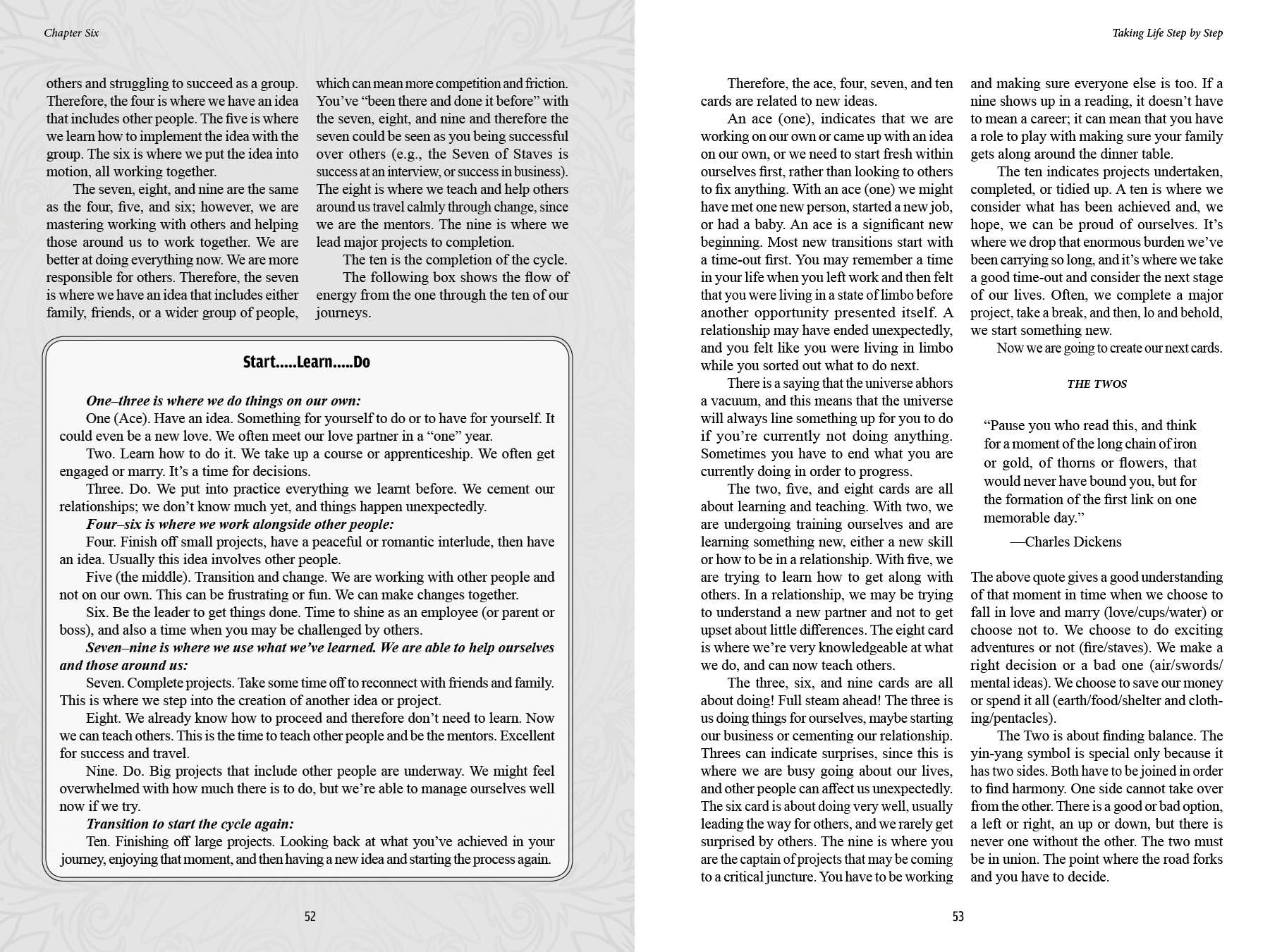 Included are exercises, an in-depth reading look-up sheet, test questions with answers, and even instructions on how to create your own deck.