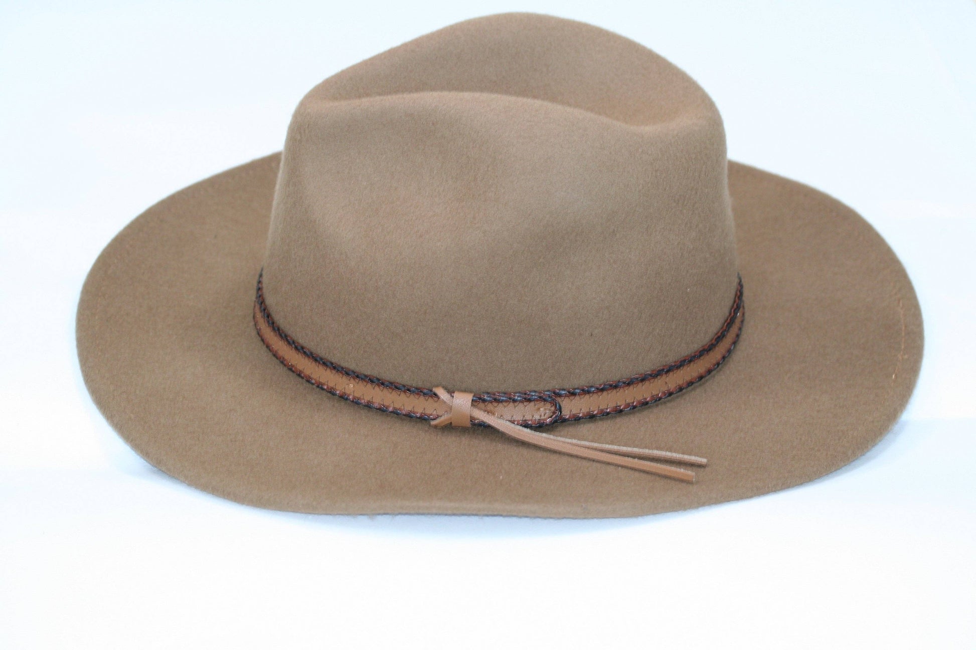 The Arizona Outback is a poly blend Felt outdoor shape hat with a 3 ¼" brim with a narrow band. Adjustable to fit multiple sizes.