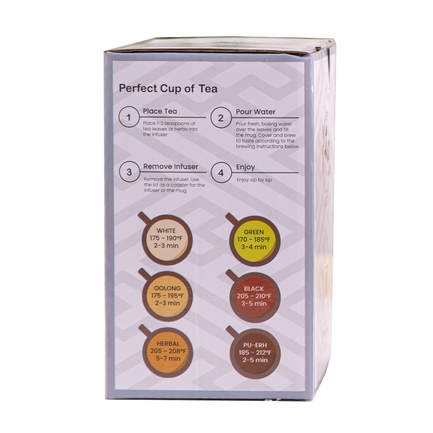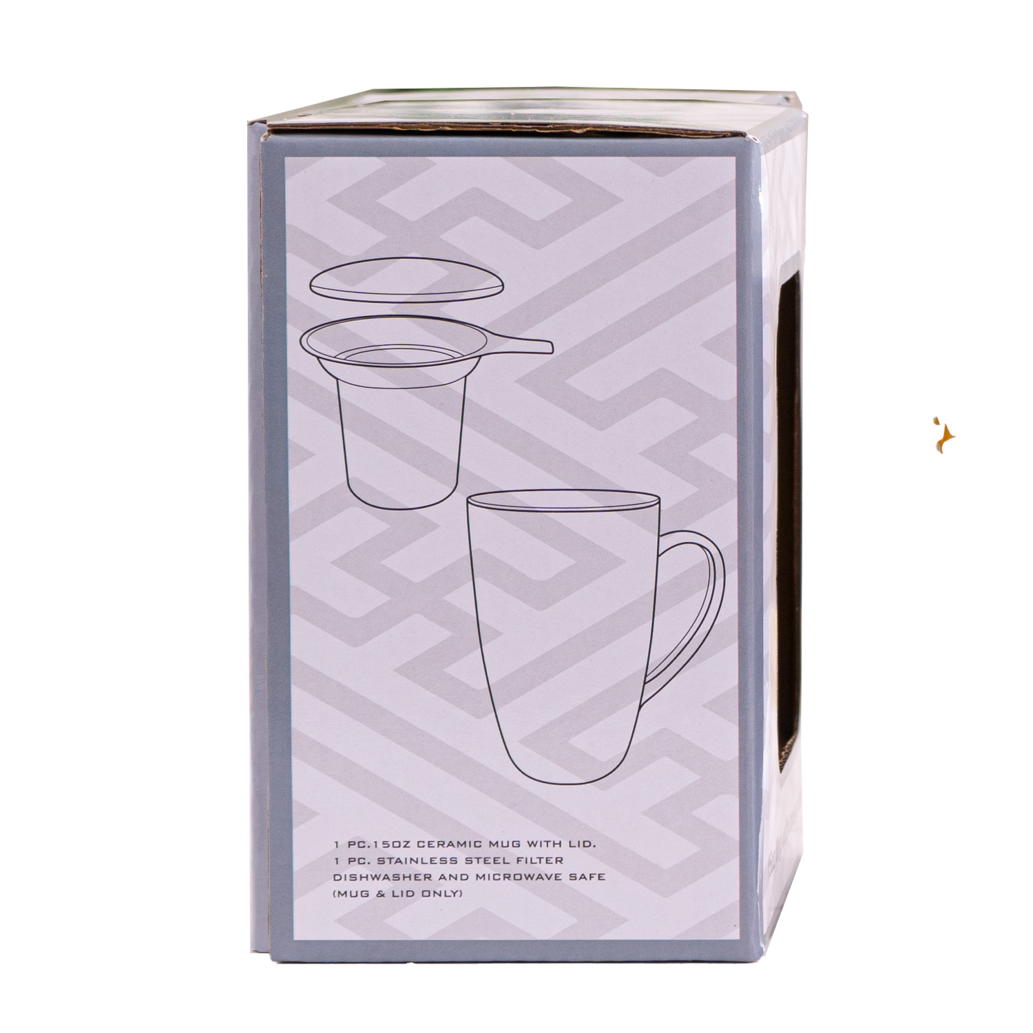 Material: Porcelain Mug and Lid, Stainless Steel Strainer