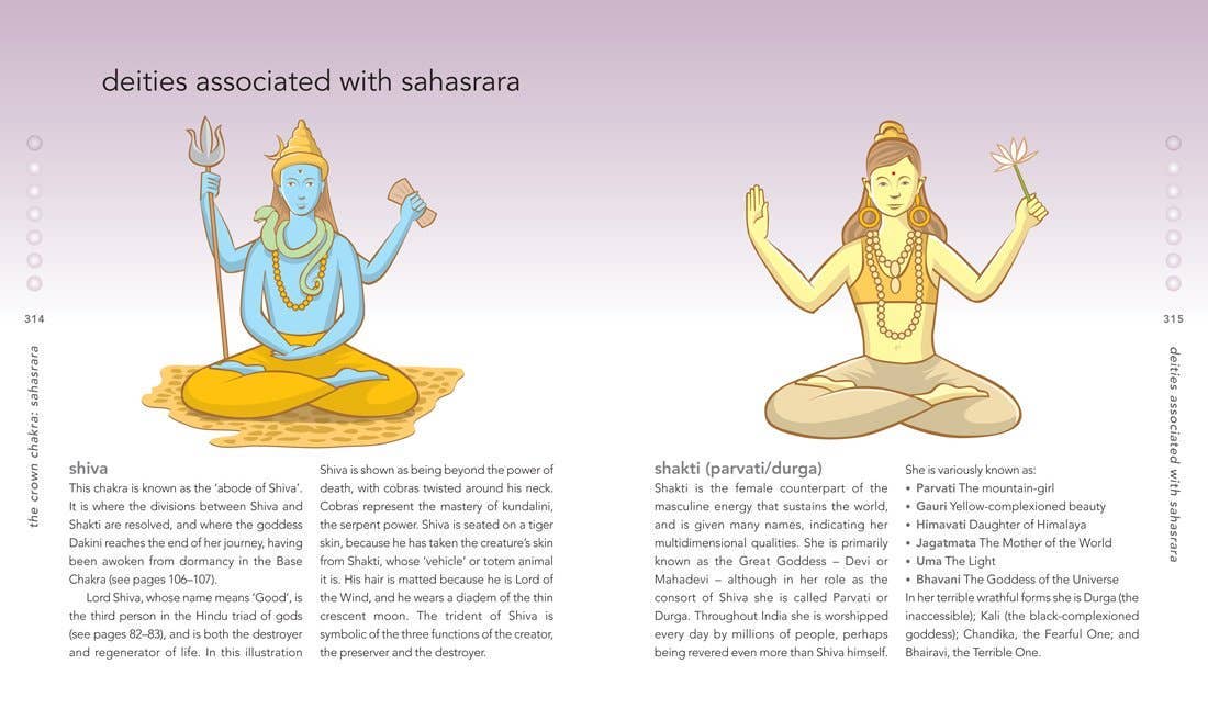 Harness the power of the chakras for healing and harmony. Chakras are the centers of energy in our body that profoundly affect our well-being. Through this exquisitely designed volume, newcomers to this alternative form of spirituality can understand every aspect of chakra power. In addition to an illuminating introduction, a detailed guide covers each chakra, with their associated colors, Indian deity, healing stone, and emotional and physical actions. One by one, go through the base, sacral, solar plexus, heart, throat, brow, and crown chakras, as well as some newly discovered ones and chakras from different traditions. There's also invaluable information on connecting chakras with aura reading and healing, and yoga exercises and meditations to strengthen each chakra. Paperback book; 5.5 x 6.5 inches; 400 pages.