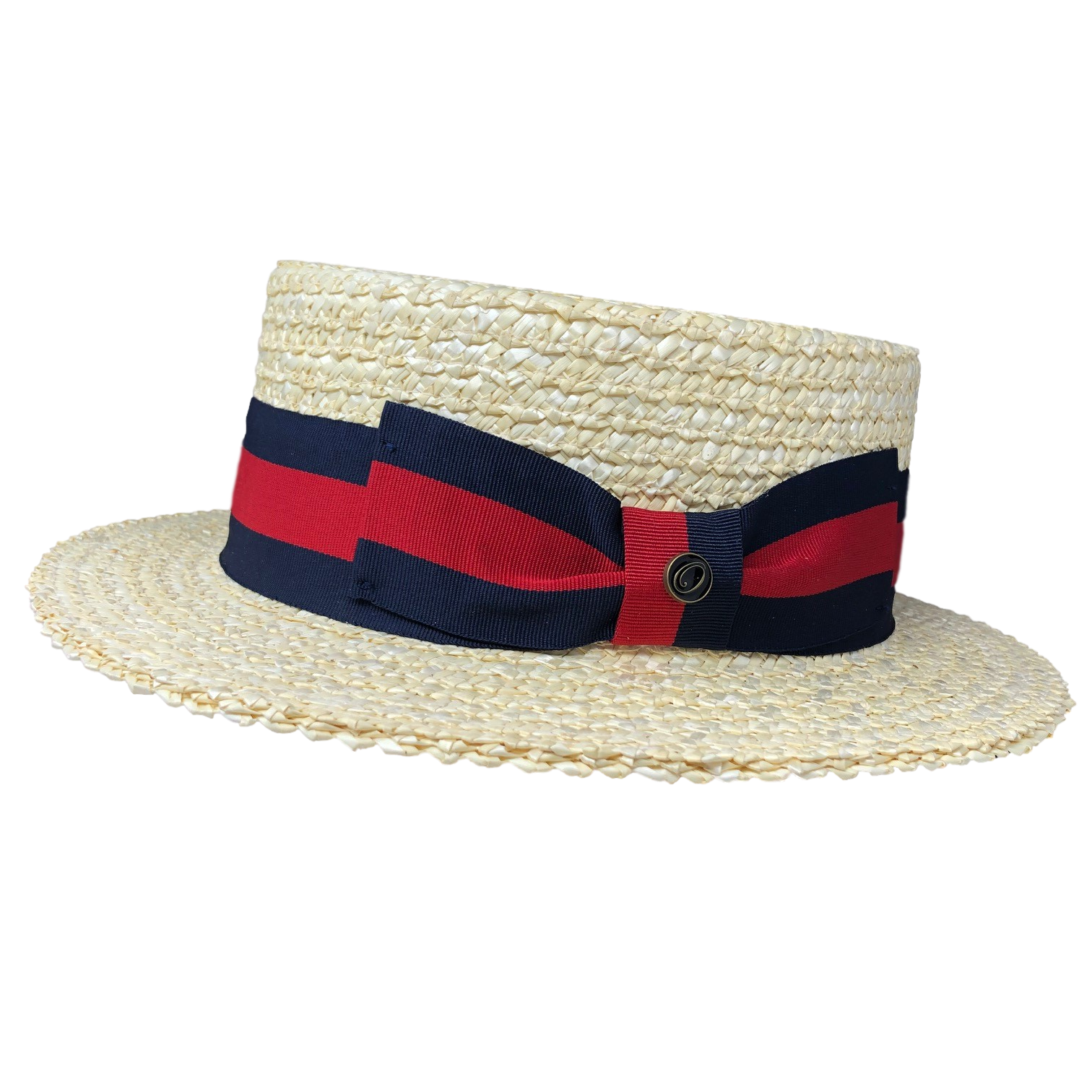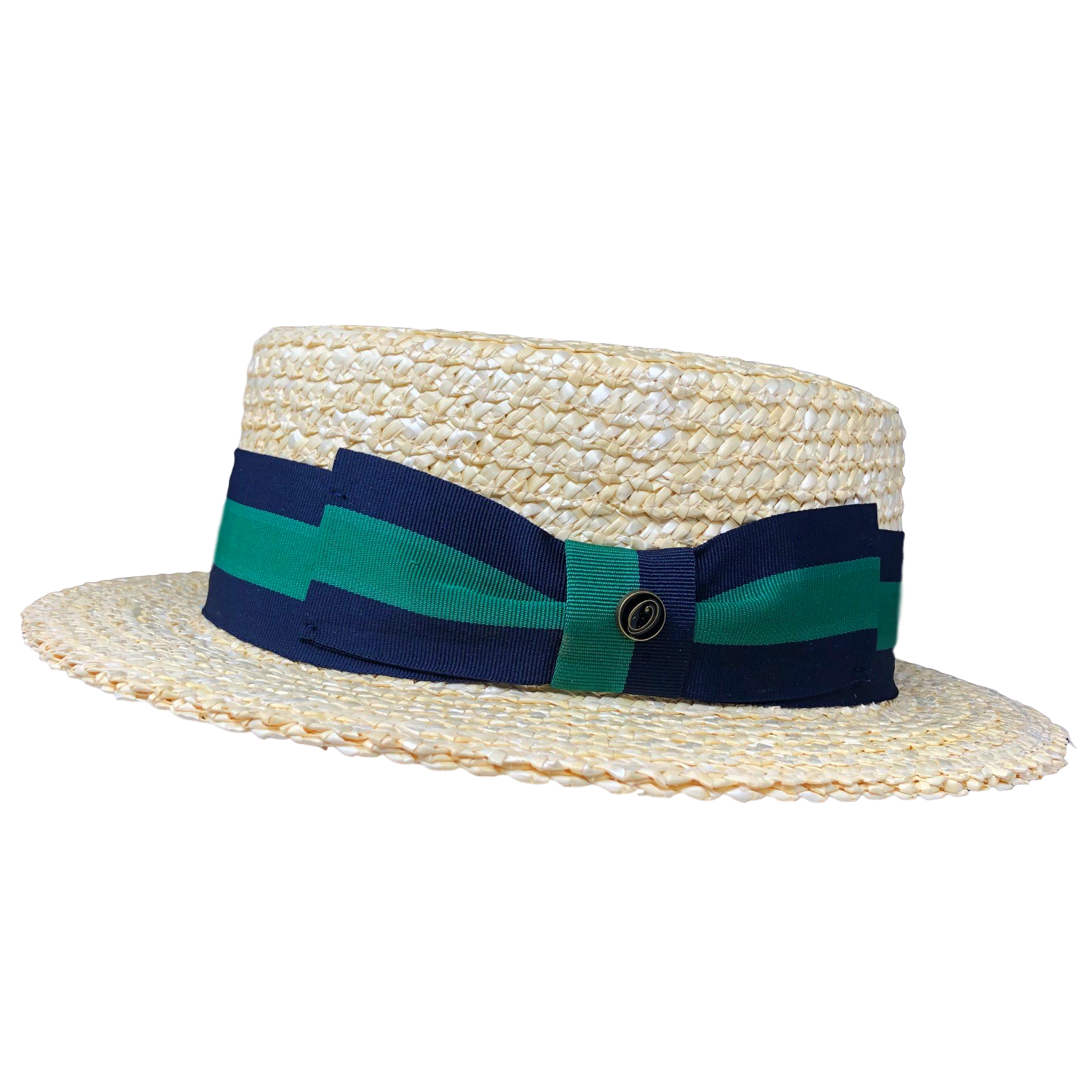 There are a few select styles of hats that are instantly recognizable and that seem to draw their power and magnitude from the past men and women that popularized them. Perhaps, no hat style exemplifies this hat force energy than the unmistakable Boater hat. A stiff brimmed style, the design exudes a multitude of auras ranging from race day aficionado to barbershop quartet and much in between. The OFH Boater is solidly constructed and is now available in two color schemes; the classic red and blue in adherence to tradition and the new green and blue band for the more adventurous, with more color options on the way this year.