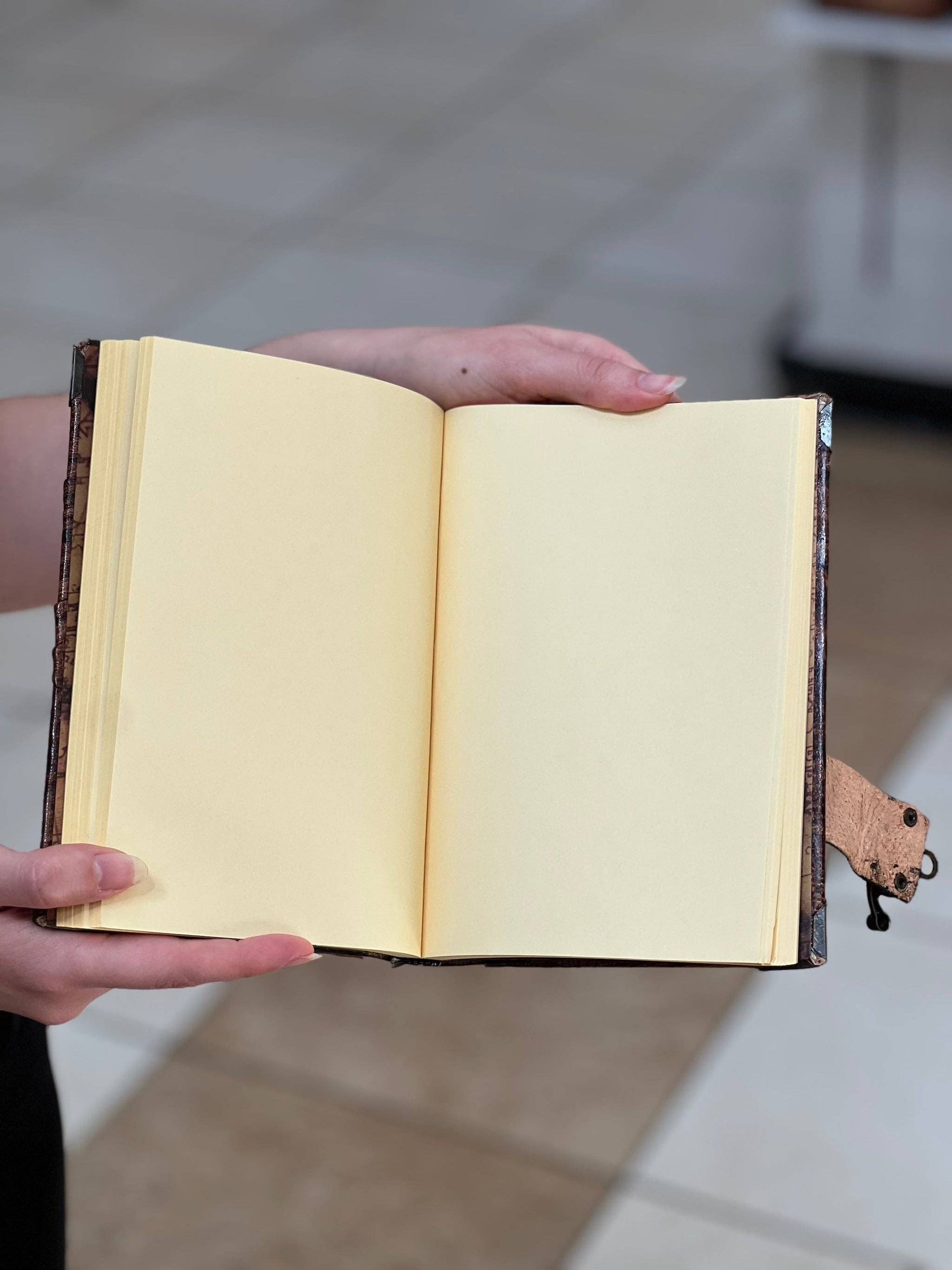 -Great quality wrinkled colored leather with Belt Straps on the exterior. The leather journal is secured shut with a C-hook and the book itself is very easy to use as the soft durable leather can easily open and close without any effort.