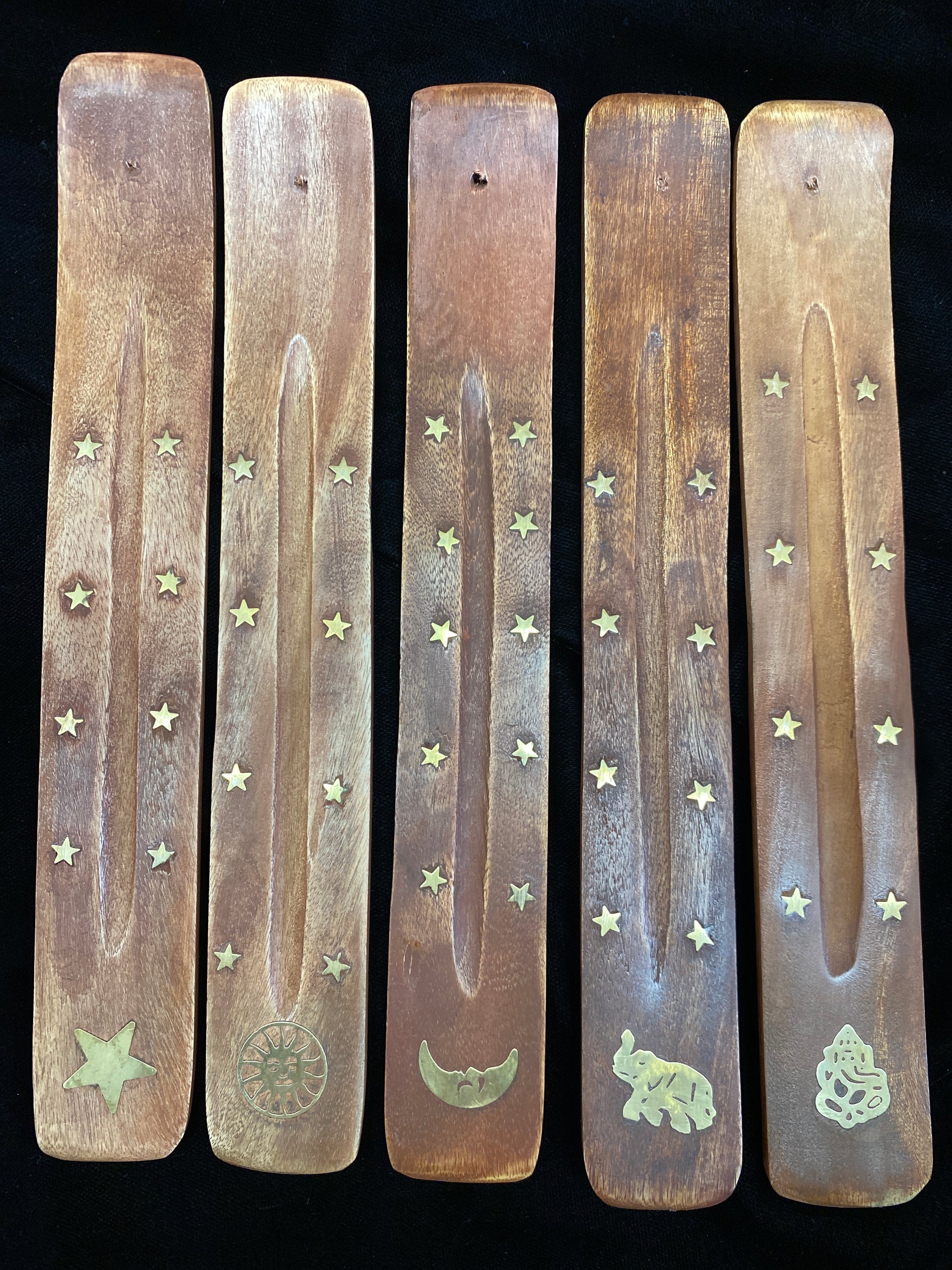 Incense Burner Wooden Flat Tray Assorted Brass Inlay Designs