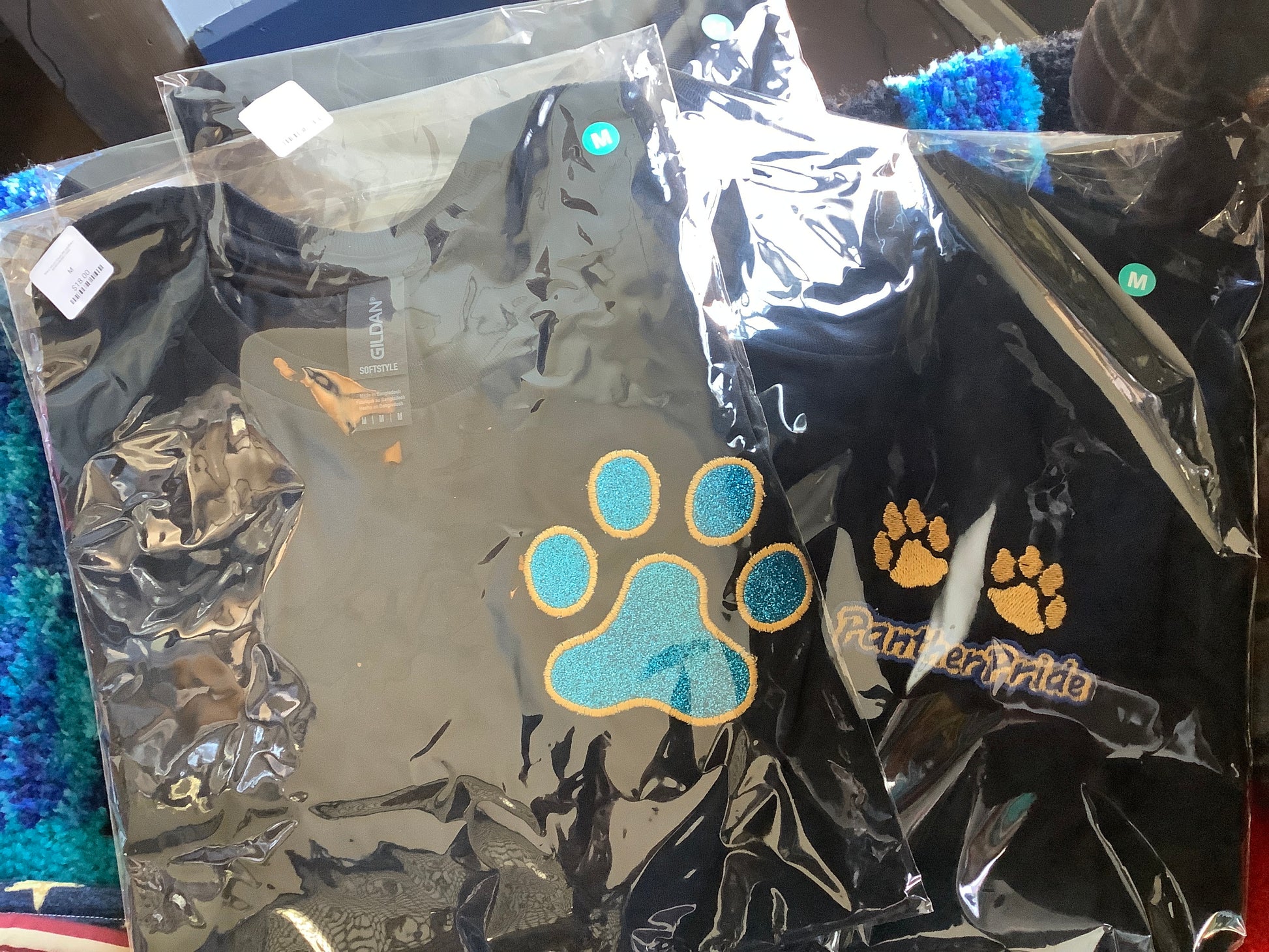 Local artist Mary Ramos black t-shirt with Maysville panthers embroidered on right hand chest