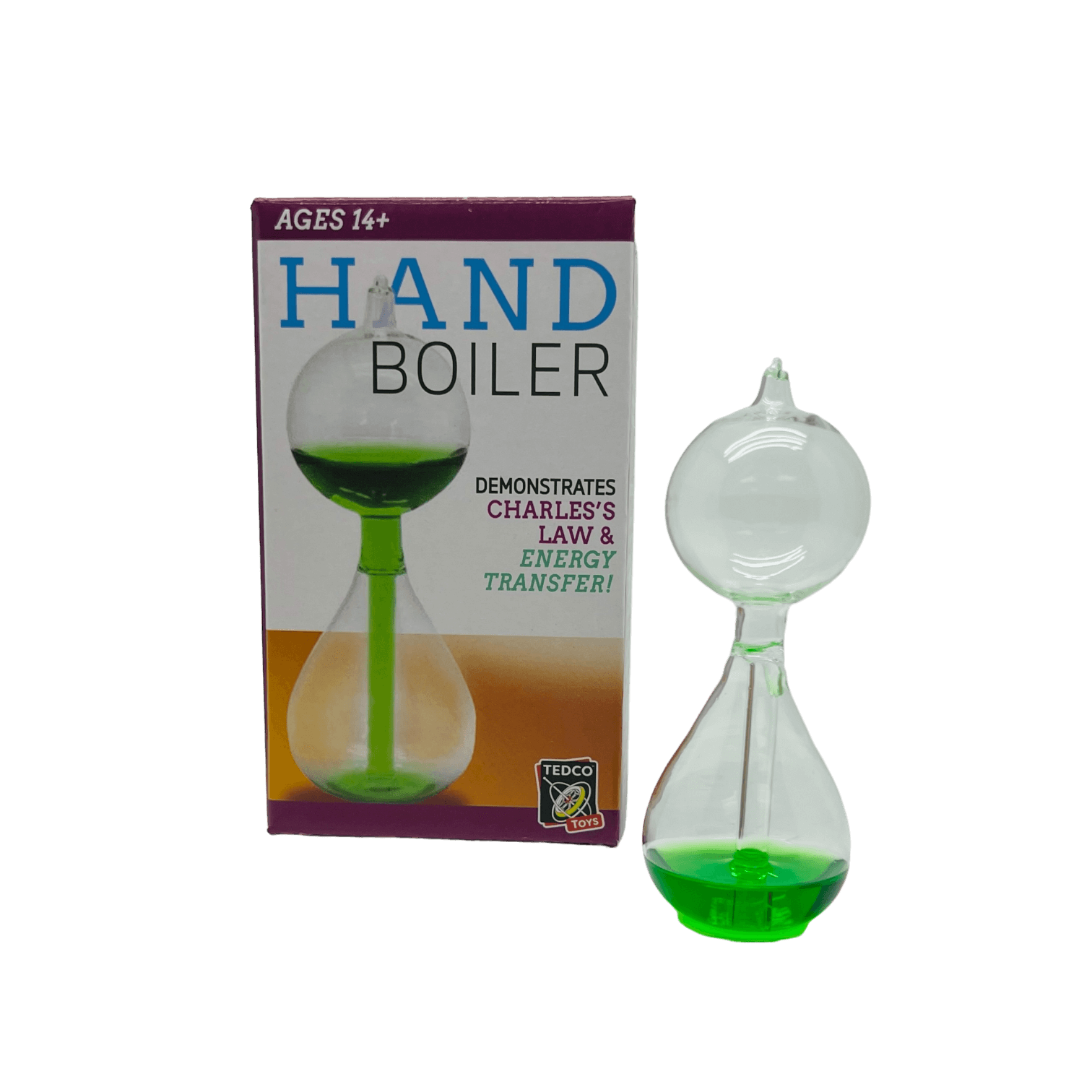 Mini Hand Boiler Green-Demonstrates Charles Law and the law of energy transfer. Glass is styrofoam packed for safe shipping! Ages 14+