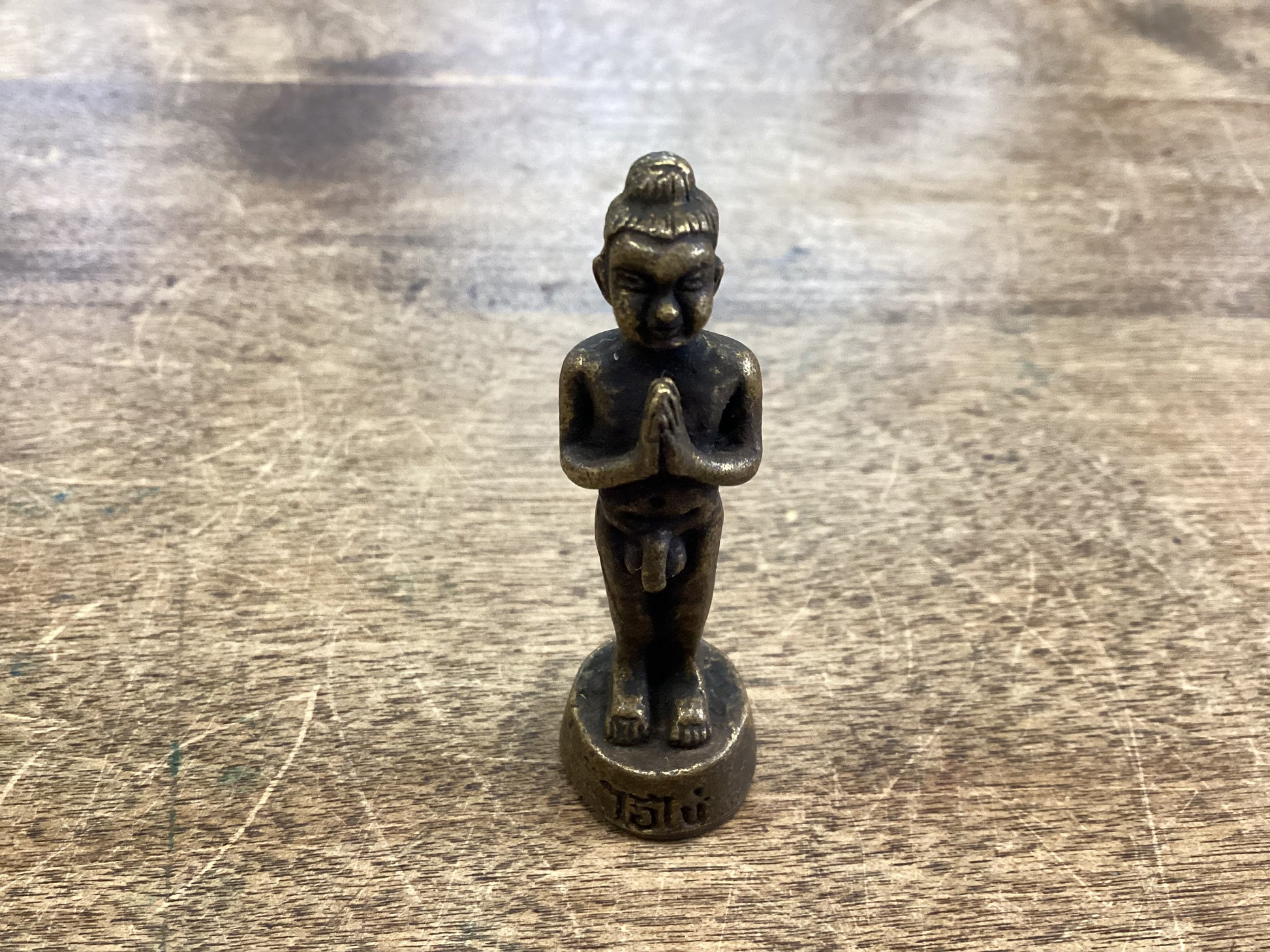 Miniature Brass Kuman Thong Figurine with Thai Script