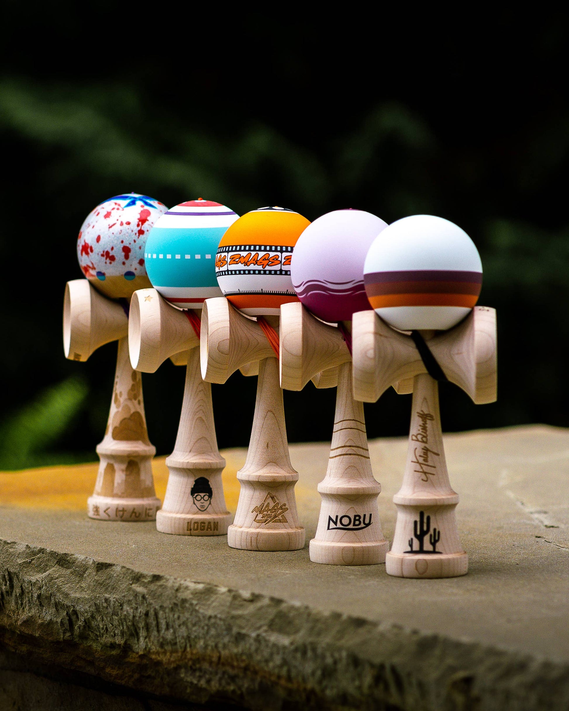 Our Kendama USA Pro Models are designed by our Pro team of players. Each model supports the Pro directly and encapsulates a bit of their personality. Super Stick and Silk options available for most styles.