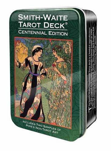 The Smith-Waite Centennial Tarot Deck in a Tin is a faithful reproduction of the original deck created by Pamela Colman Smith in 1909 under the direction of Arthur E. Waite. This classic tarot deck features full pictorial scenes in the muted colors chosen by Pixie herself. The deck was first issued in 2009 by U.S. Games Systems as part of the Pamela Colman Smith Commemorative Set. The 80-card deck includes the standard 78 tarot cards plus 2 samples of Pixie s non-tarot artwork. Cards in this pocket-sized deck measure 2.25in x 3.75in.