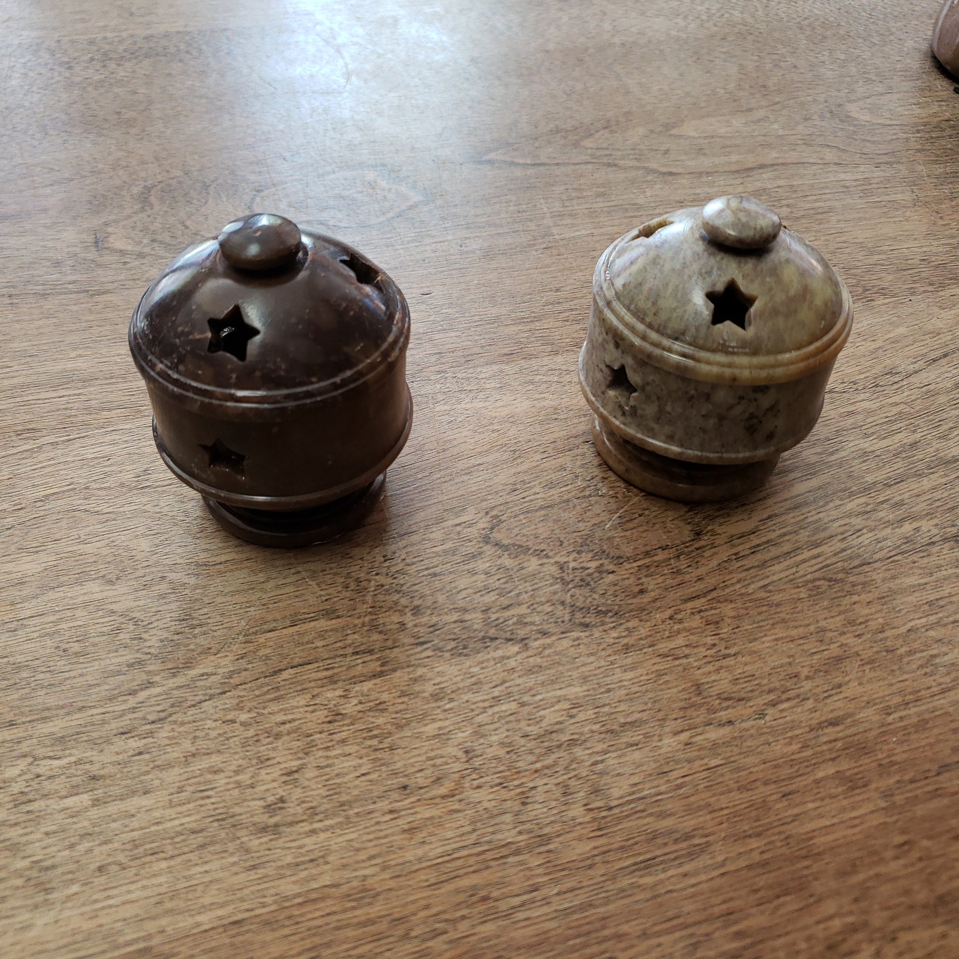 Approximately 2.25" diameter and 2.5"tall with a lid.