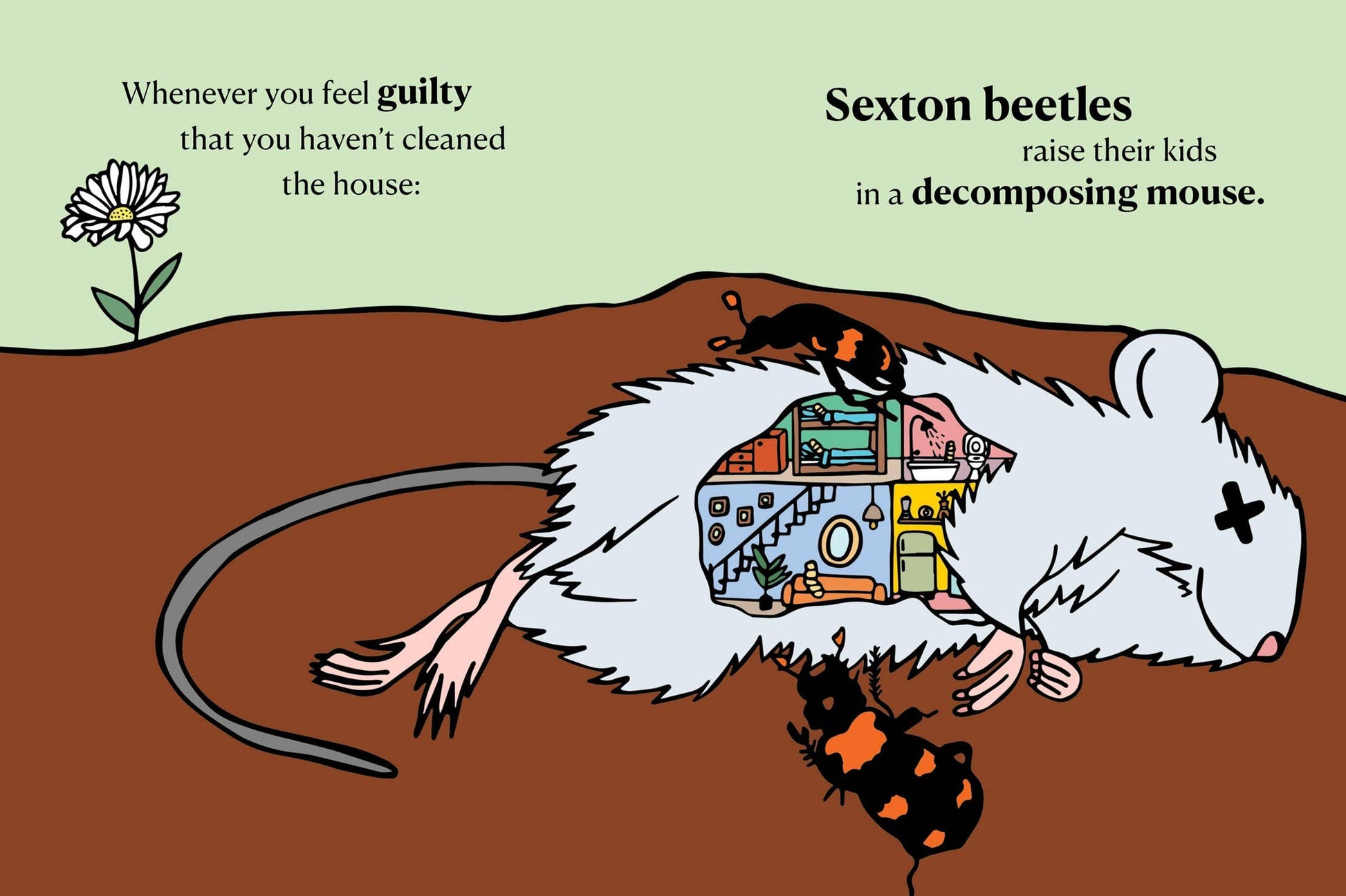 A hilarious and reassuring gift for every mom: because we’re all doing the best we can, and the natural world is filled with moms worse than you! A mom giraffe is pretty nice until the fetus drops. She’ll birth a newborn baby calf, then kick him ’til he walks. Whenever you feel guilty that you haven’t cleaned the house: Sexton beetles raise their kids in a decomposing mouse. A koala mom will feed her kids her own poop. Yes, poop. Panda moms will abandon one twin because raising two is, well, just too much. And every now and then a cuddly little hamster mom will —yup— eat her newborn pups. These and other true facts from the animal kingdom offer a hilarious reality check on what constitutes “good parenting."
