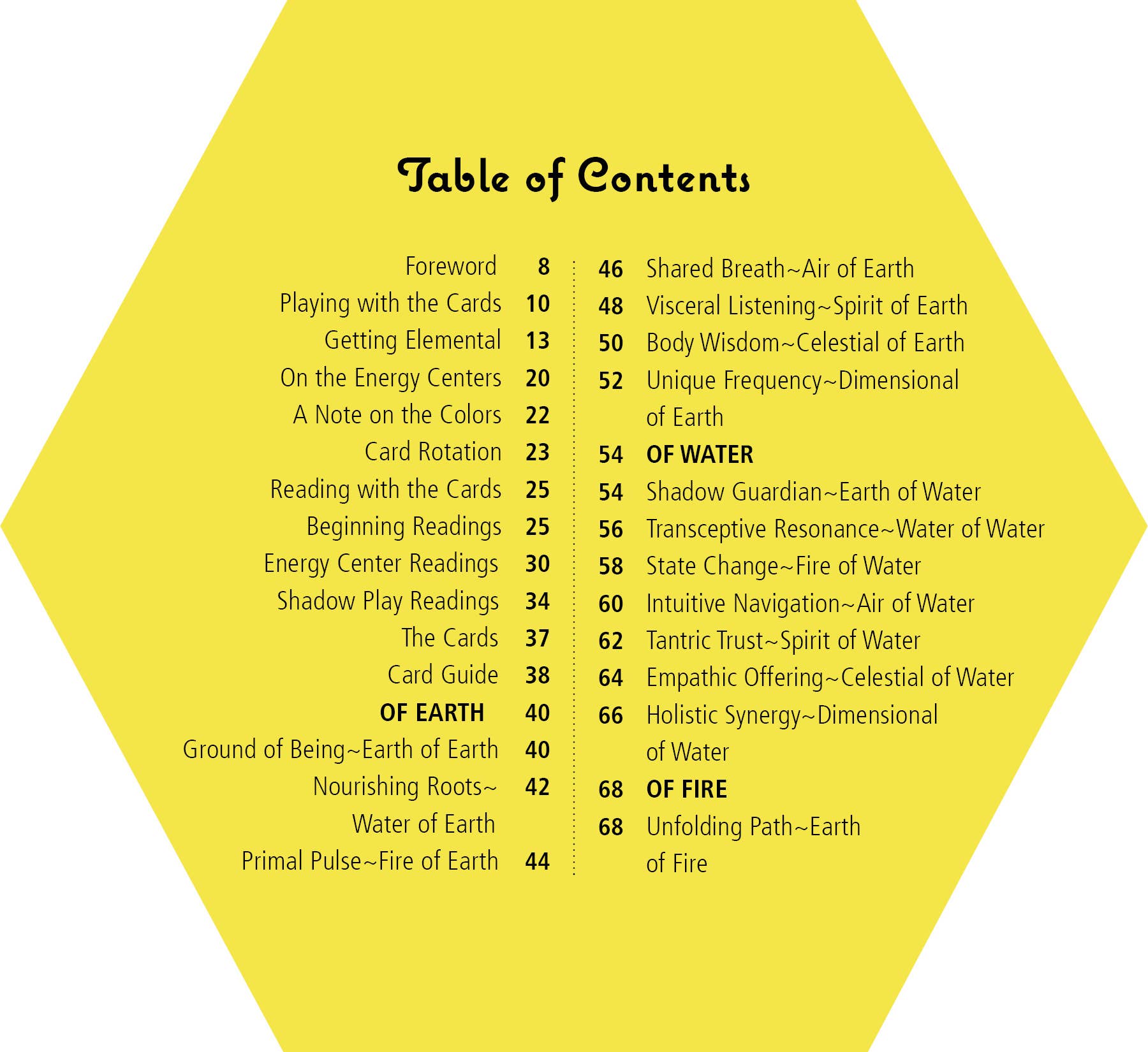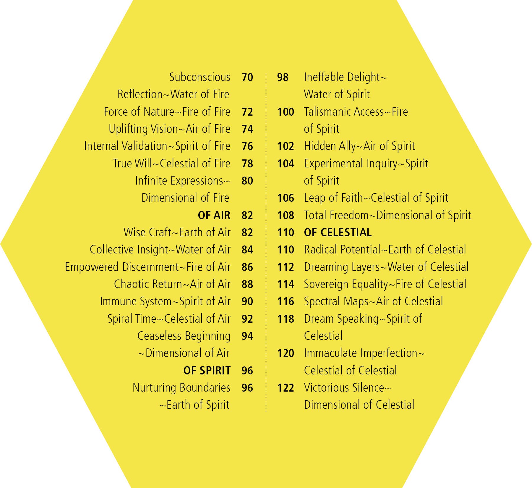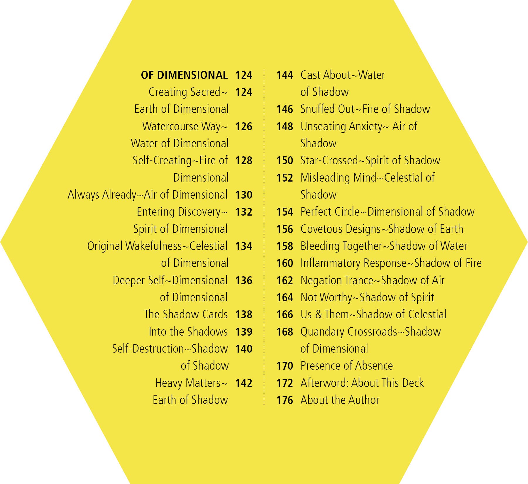 The dawn of the Waking Dreamer is upon us. A time to reclaim our imaginations and step even further into our growth. Many societies have ignored this more abstract side of our being to such a degree that we are inclined to avoid having anything to do with it. Now we have a map to guide us with the Wild Harmonic Oracle, a series of elemental relationships that help cultivate a deepening communion with Creativity, thereby re-creating your life both inside and out. This set of 65 circular cards includes the elements of Earth, Water, Fire, Air, Spirit, Celestial, and Dimensional, and an additional element called Shadow. The position of the card provides the reader with insight into the direction of their journey, rising from Earth to Dimensional and clearing energies, called ascension, and returning back again when a vision is attained, called embodiment.